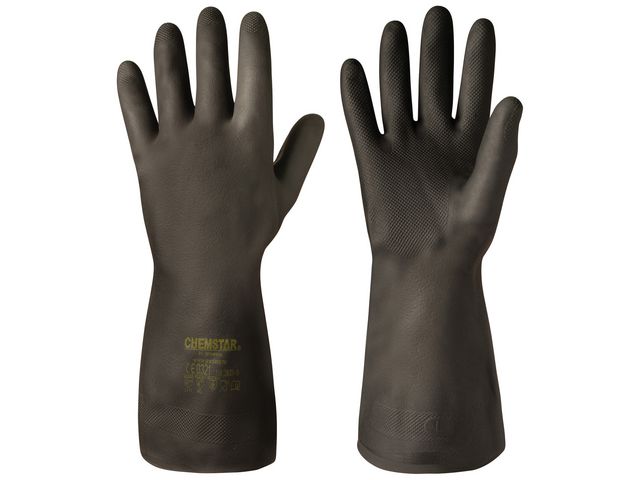 Granberg 114.2000 Chemstar är slitstarka neoprenhandskar som lämpar sig för våta arbeten och kemikaliehantering inom tillverkningsindustri, oljeindustri, kemisk industri, sanering och underhåll. Handskarna har en mönstrad innerhand som ger förbättrat grepp, är utan förstärkning och har ett flossat bomullsfoder för ökad komfort. Observera att handskarna innehåller latex. Kontrollera alltid att handskarna är testade och funktionella för att skydda mot den kemikalie du ska hantera.