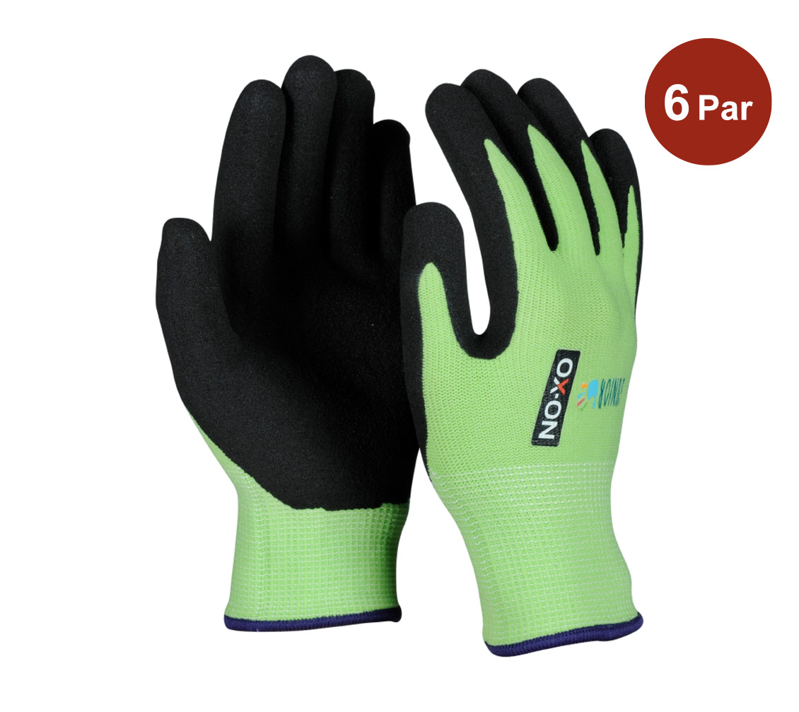 OX-ON Junior 10000 är den extremt bekväma, smidiga och slitstarka handsken för barnet som behöver en perfekt matchad passform för sin hand utan att kompromissa med fingerkänslan. Hela handflatan och fingrarna har en doppad nitrilskumbeläggning, vilket ger barnet ett exakt grepp – vare sig det är vått eller torrt. Handytan och handleden är tillverkade av nylon och elastan, vilket gör stickhandsken otroligt elastisk. Juniorhandsken är perfekt för barn som är ute i fuktigt väder eller som behöver ett par handskar medan de behåller fingerkänslan. Det betyder att barnet kan hålla handskarna på – istället för att ta av dem – när händerna behövs. Dessutom är OX-ON Junior 10000-handsken OekoTex-certifierad, vilket garanterar att handsken inte innehåller farliga kemikalier eller färgämnen.