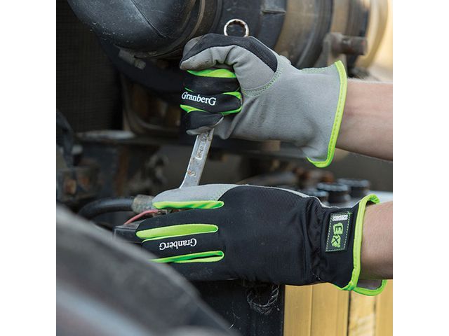 I mer än 50 år har Granberg levererat arbetsglädje och trygghet genom sina skyddshandskar av högsta kvalitet. De har ett räfflat mönster på handflatan och fingrarna vilket gör dem idealiska för användning i torra eller våta förhållanden tack vare den halksäkra ytan. Bomullsfodret inuti handskarna gör dem extra bekväma. Dessutom är de längre än vanliga handskar vilket ger skydd ovanför handlederna.