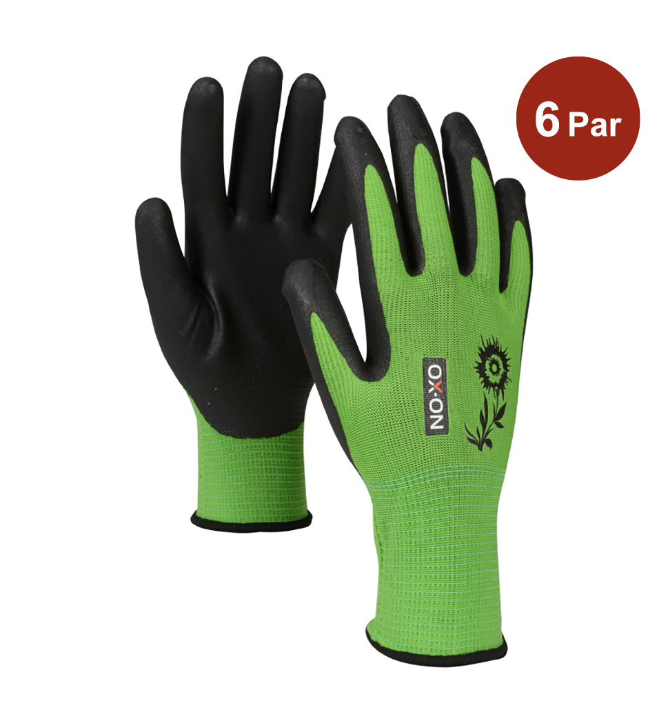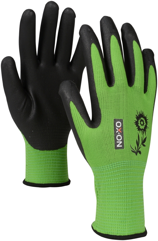 OX-ON Garden Comfort 5300 är en Oeko-Tex®-certifierad handske för alla som arbetar i växthus, trädgårdsodling, skörd av frukt och bär, såväl som all annan trädgårdsskötsel. Oeko-Tex®-märkningen ger en försäkran om att handsken är testad för ämnen som är skadliga för hälsa och miljö. Hög kvalitet kan också förväntas av den fingerdoppade polyesterhandsken som ger perfekt passform. Handflatan och fingertopparna är belagda med nitrilskum för stor komfort och bärande under längre perioder. Snygg design med färger i svart och grönt. En enda svart blomma är tryckt på baksidan. Garden Comfort 5300 är den mest populära Garden-seriens handske, som ger hög kvalitet för priset.