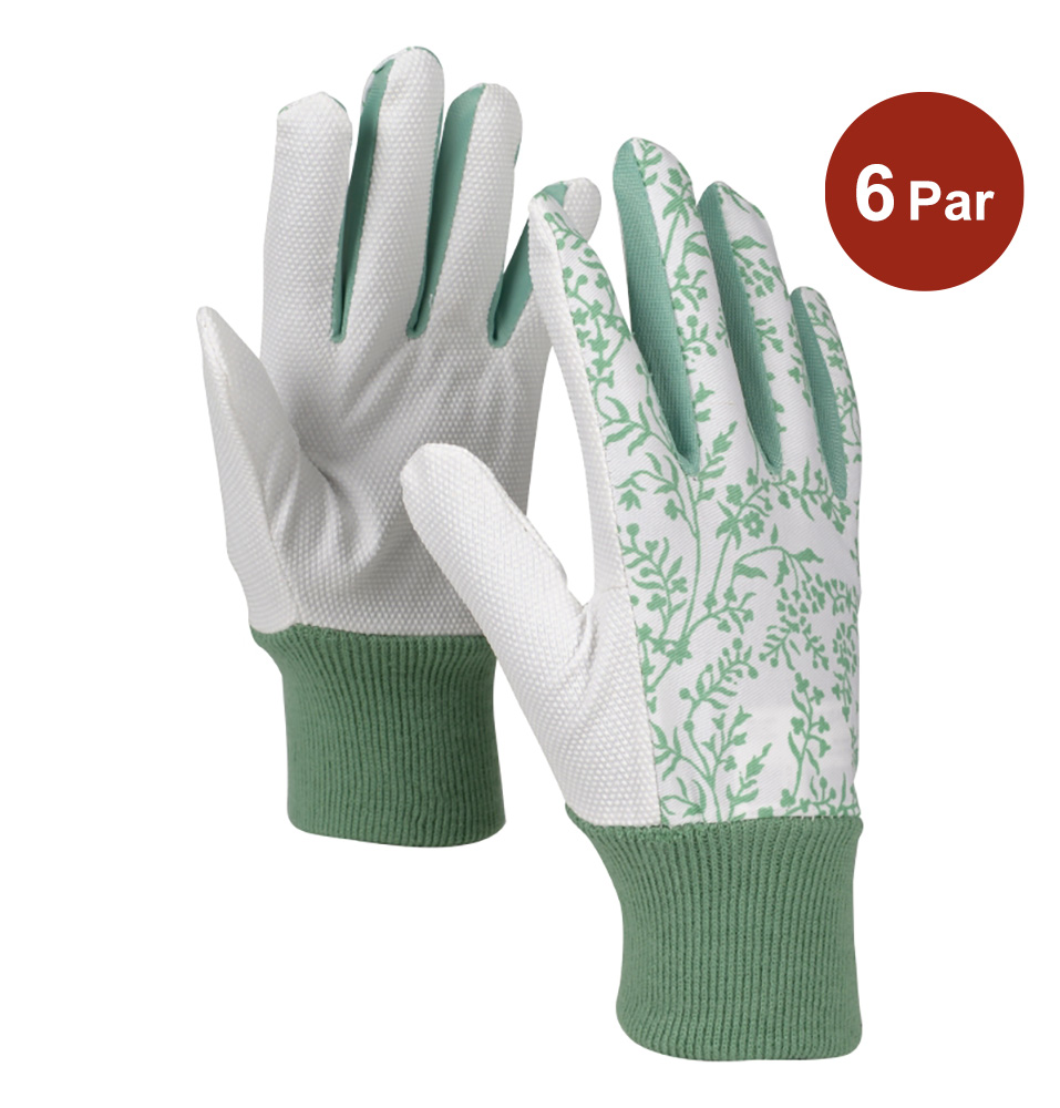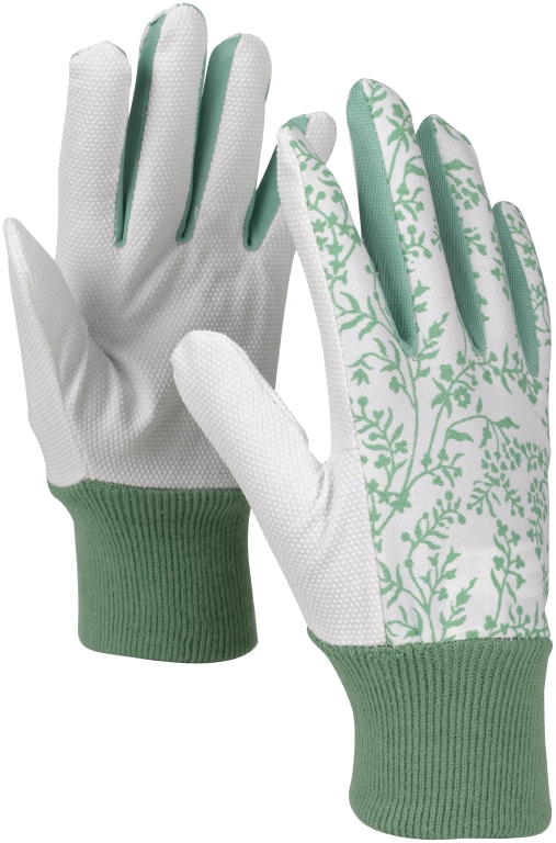OX-ON Garden Comfort 5304 är för alla som vill ha en bekväm handske för användning i torra miljöer inom trädgårdsodling, i växthus och köksträdgård, eller när man arbetar med verktyg, ogräsrensning och putsning. Handsken är gjord av mjuk bomull och elastan för en bekväm passform. Handflatan är belagd med mini PVC-prickar för ett stadigt grepp när du arbetar med verktyg eller växter. Denna modell har en stickad mudd för att undvika att smuts och smuts tränger in. Den stickade mudden är mjuk och ger en extra bra passform. Garden Comfort 5304 har ett blomtryck på handryggen och är i gröna och vita färger. Materialen är av hög kvalitet och tillåter perfekt andningsförmåga.