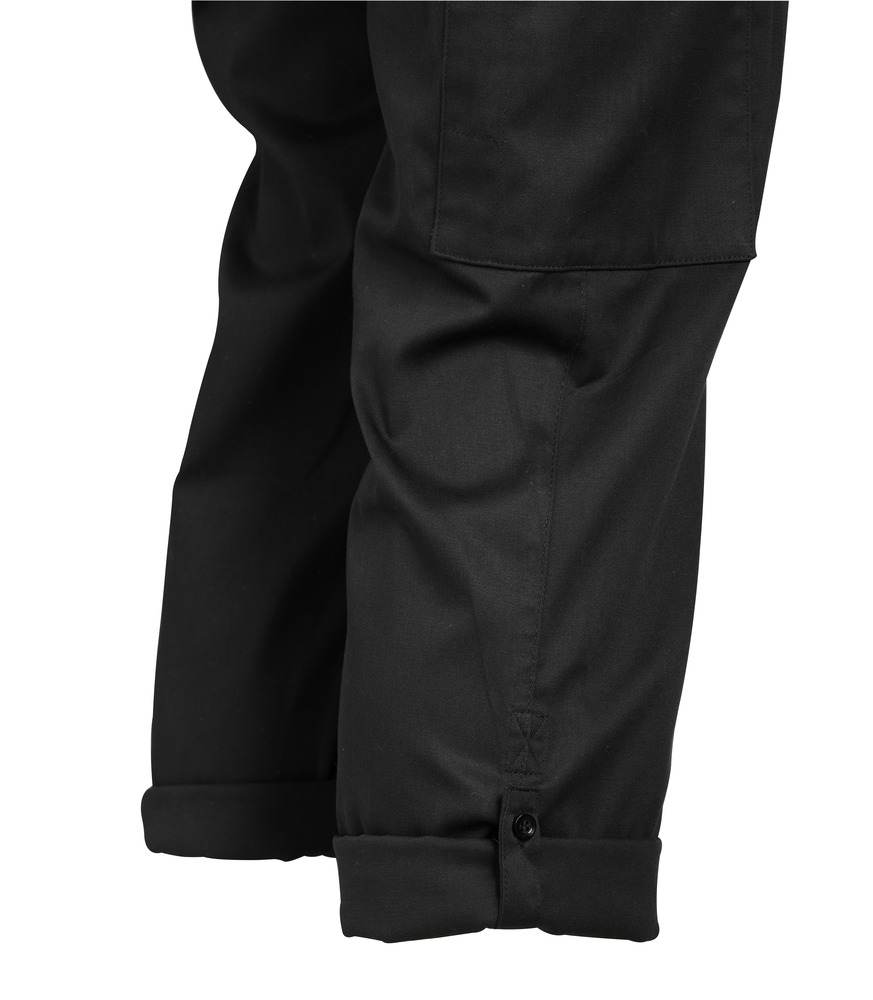 För varmare dagar kan byxbenen vikas upp och fästas med en knapp i sidan för att skapa en 3/4-lång modell. Förböjda knän ger ökad rörelsefrihet och bekvämlighet under hela arbetsdagen.