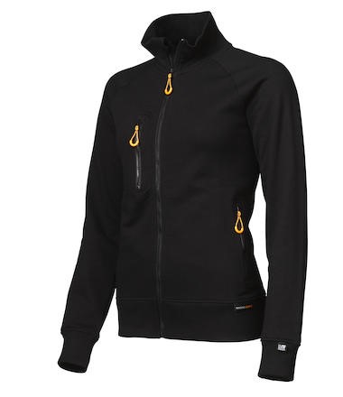 Sweatshirt i dammodell med raglan ärm, lång dragkedja framtill samt bröstficka och 2 framfickor med dragkedja. Jersey material i 80% bomull och 20% polyester, med borstad insida för skönare komfort. 2x2 ribb i ärm mudd samt nederkant. Halvmåne i nacke. Diskret Worksafe-print på bakre skuldran.