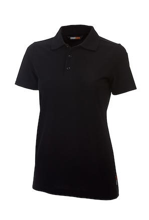 Klassisk piké från Worksafe i bomull/polyester-blandning för extra slitstyrka. Kort knappslå med ton-i-ton knappar. Dam-modell