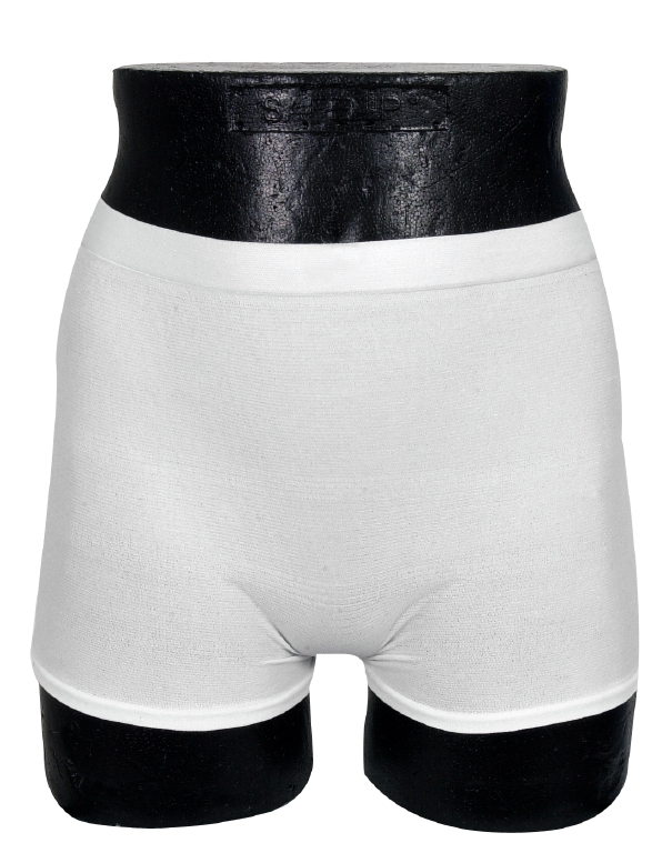 Abri-Fix Pants Super är en elastisk fixeringsbyxa med ben av andningsbart, mjukt material som följer kroppens anatomi. Byxorna ser ut och känns som vanliga underkläder. Det elastiska materialet och sticktekniken håller skydden tätt mot kroppen vilket garanterar läckagesäkerhet. Det gör att de fungerar optimalt oavsett aktivitetsnivå och rörelseförmåga. Den sömlösa sticktekniken – ett innovativt sätt att producera textilier som är nästan fria från sömmar – förhindrar tryckmärken och hudirritation. Produkterna kan tvättas 100 gånger och är därför mycket kostnadseffektiva genom längre användningstid. Abri-Fix Pants Super har färgkodad midjeresår för respektive storlek, och är även märkta med produktnamn, tvättråd och materialsammansättning. 97 % polyester, 3 % elastan