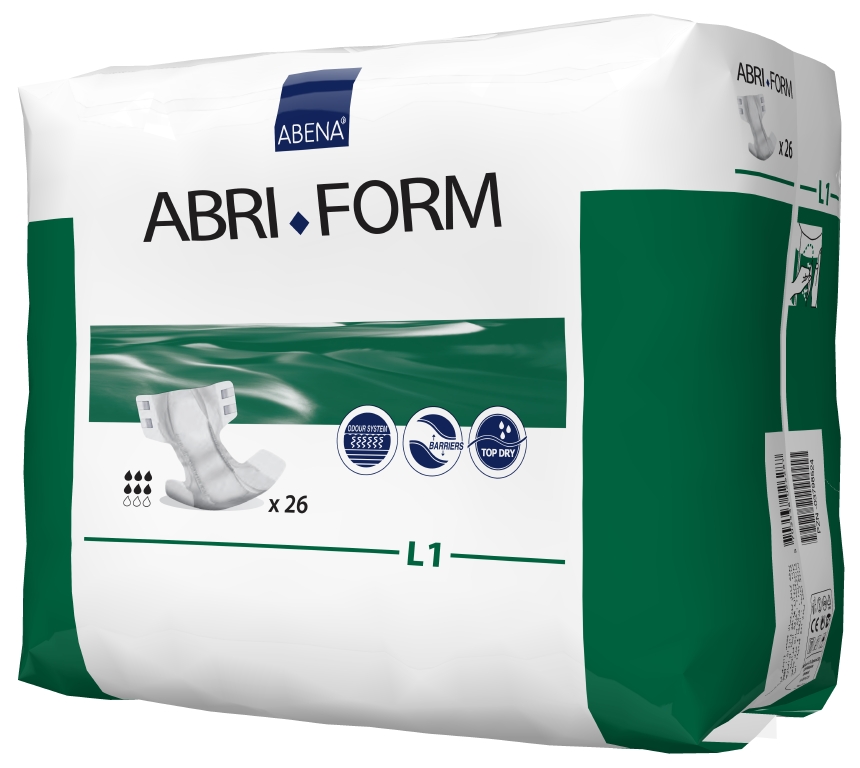 Varumärke Abena EAN 5703538026300 Typ Inkontinensskydd Serie Abri-Form Kategori Inkontinens, Hygienartiklar Färg Vit Bredd 80 cm Längd 97 cm Vikt 119 g Antal st/fp 26 Antal fp/krt 4 Storlek L1 Kön Unisex Färgkod storlek Grön Benmodell Utan ben Absorptionsförmåga 6 Egenskaper Med grönt tryck, Med tejp, Comfort Höftmått 100-150 cm Bredd (fram/bak) 800/800 mm Hållbarhetstid 5 år - Produktblad