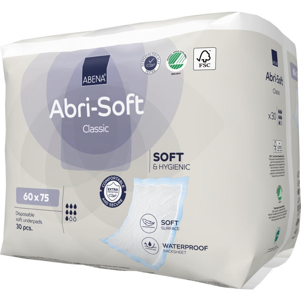 Abri-Soft Classic är ett skyddande engångsunderlägg för t.ex. sängar och stolar. Det är lämpligt vid inkontinens, men även för osterila procedurer. Underlägget har förseglade kanter för optimalt läckageskydd. Ytan är täckt med ett mjukt nonwoven-material för högre komfort. Med engångsunderlägg minskar risken för kontaminering. Abri-Soft Classic har medelhög absorptionskapacitet och finns i olika storlekar.