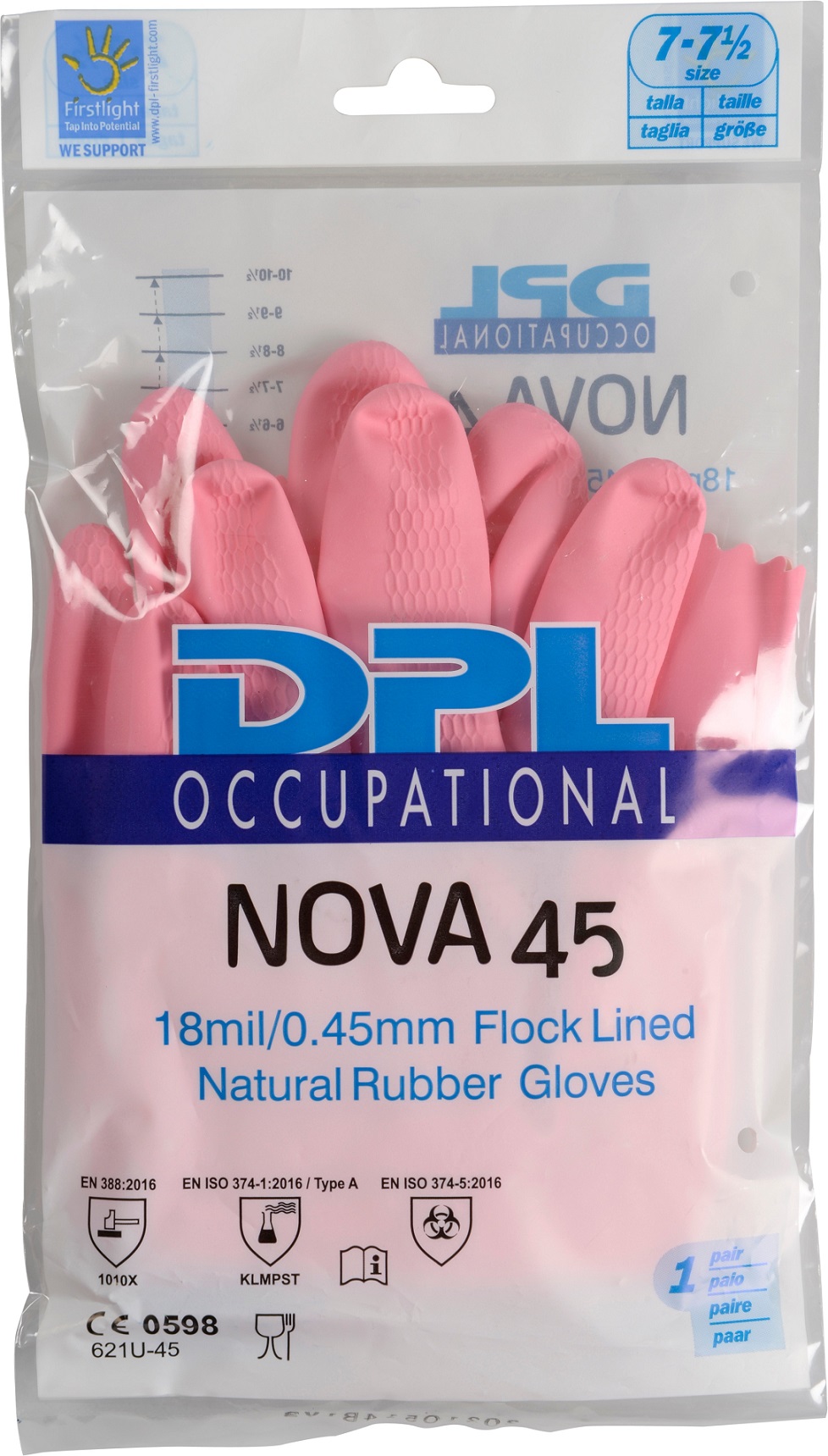 EAN 5703538114113 Typ Hushållshandskar Material Latex Färg Rosa Bredd 9.5 cm Längd 30 cm Tjocklek 0.45 mm Antal fp/krt 12 Storlek 7 - 7.5 Antal par/fp 12 - Produktblad