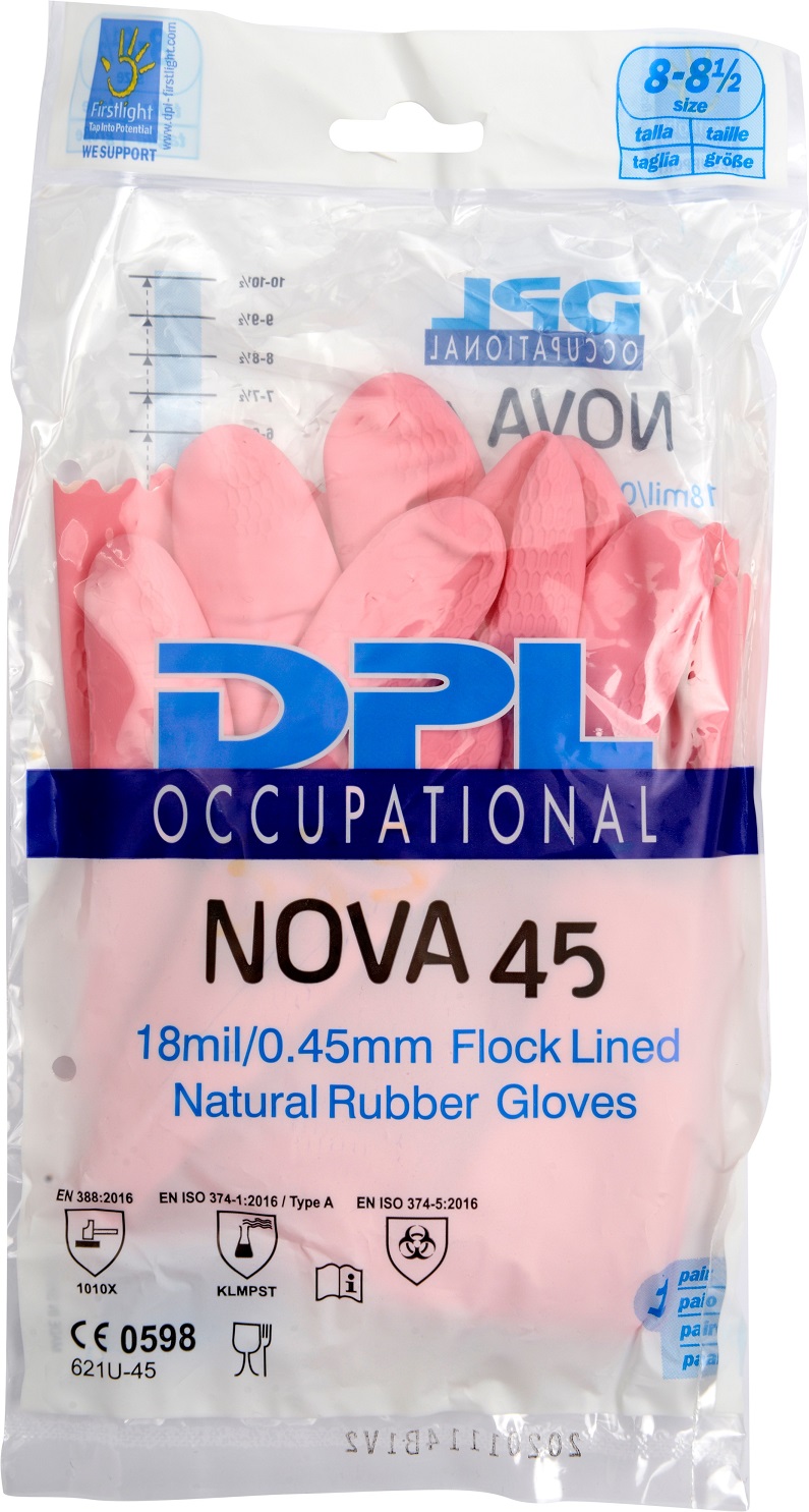 EAN 5703538114151 Typ Hushållshandskar Material Latex Färg Rosa Bredd 10.5 cm Längd 30 cm Tjocklek 0.45 mm Antal fp/krt 12 Storlek 8 - 8.5 Antal par/fp 12 - Produktblad
