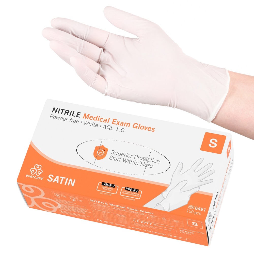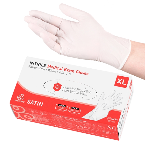 Engångshandskar Nitril Evercare Satin Vit AQL 1.0