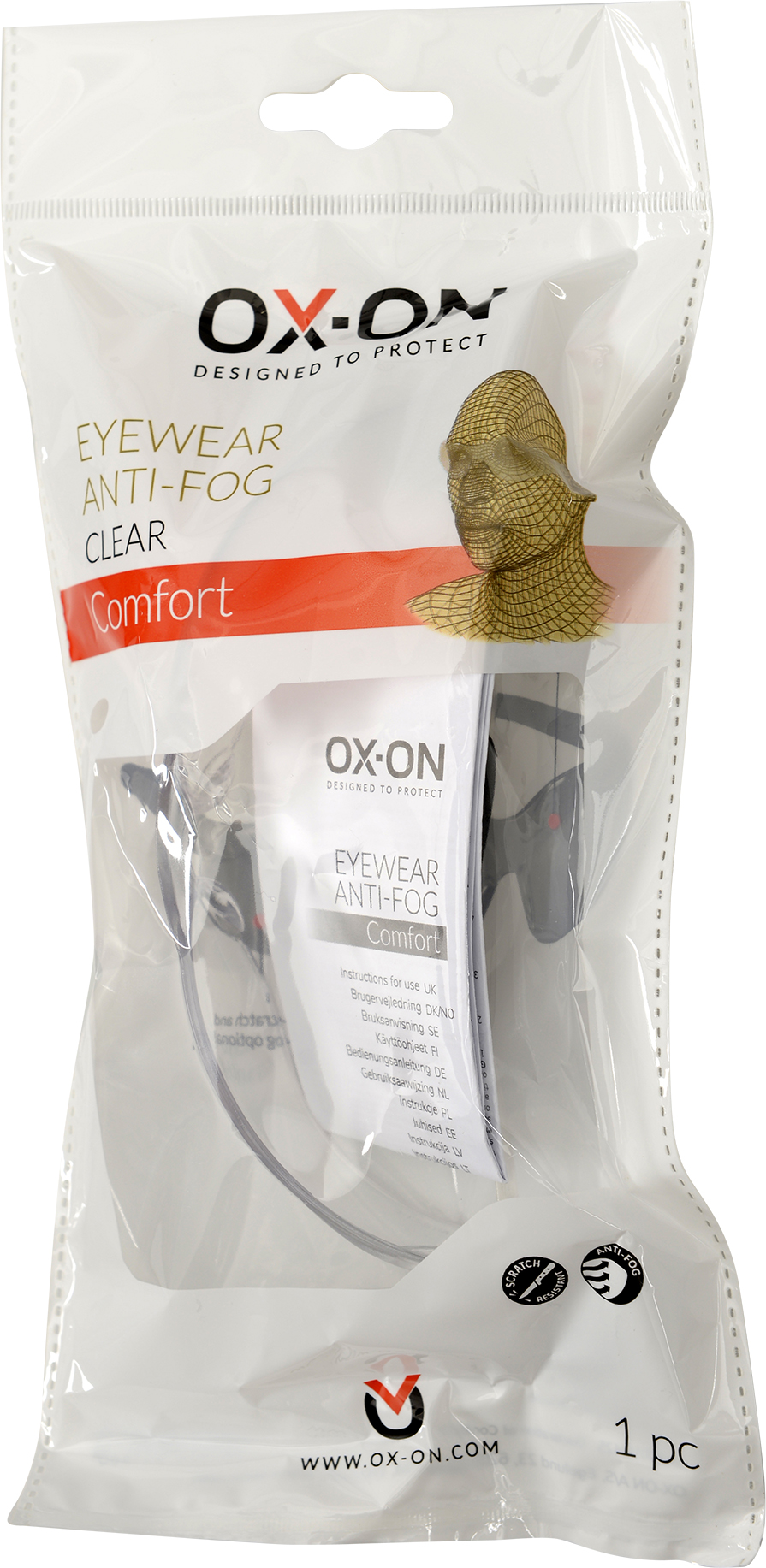 OX-ON Eyewear Anti-fog Comfort Clear är ett par lätta och bekväma skyddsglasögon med både anti-dimma och anti-repbeläggning. De är tillverkade av starkt polykarbonat som ger exceptionell slagtålighet och lång hållbarhet – perfekt för både inomhus- och utomhusarbete. Glasögonen erbjuder 99,9 % skydd mot UV-strålning och har en design som ger 180° synfält för maximal sikt. De mjuka gummitappspetsarna säkerställer att glasögonen sitter stadigt och bekvämt även vid längre användning. Med optisk klass 1-certifiering är de lämpliga för kontinuerlig användning.