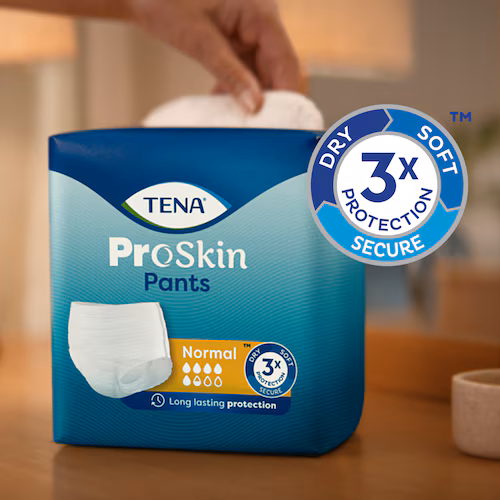 Byxskydden har ett andningsbart, textilliknande material som ger hög komfort och en kroppsnära passform. TENA:s trippelskydd bidrar till läckagesäkerhet och hjälper till att bevara hudens naturliga hälsa. Produkten är dermatologiskt testad och godkänd av Skin Health Alliance.