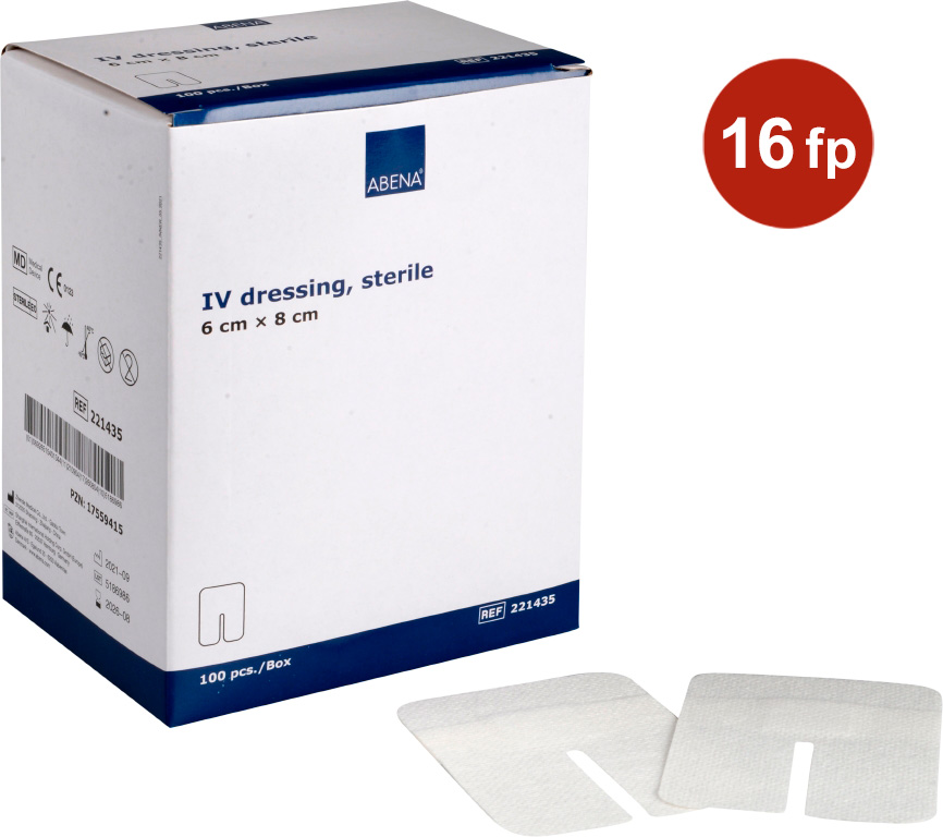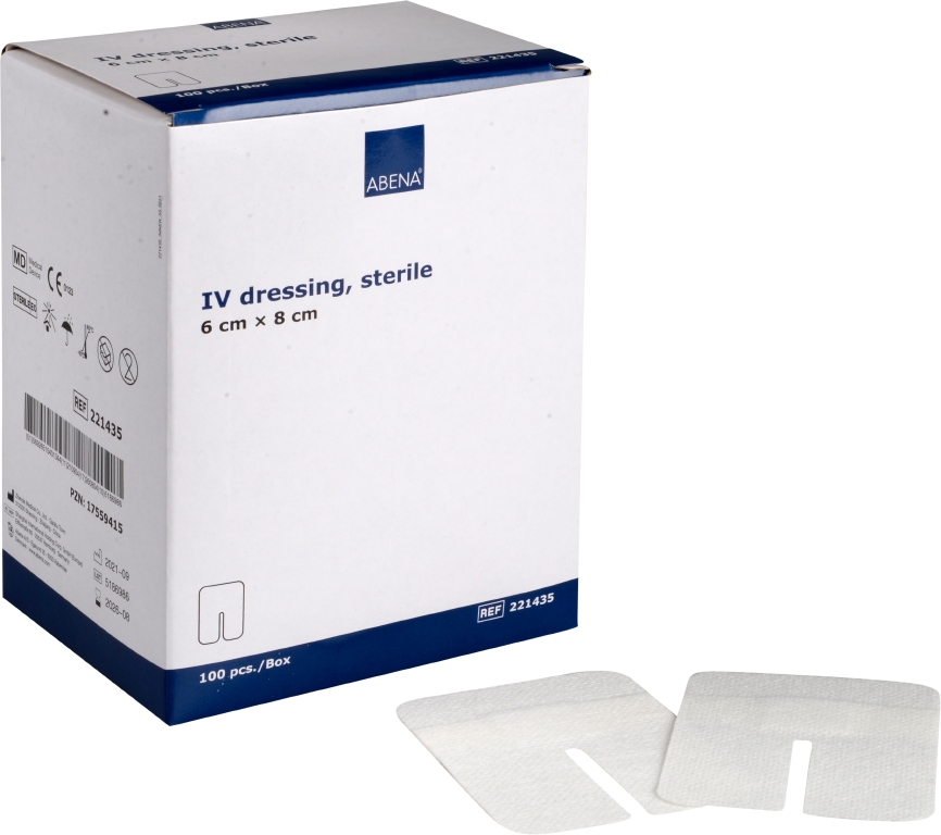 ABENA IV-förband är ett mjukt och bekvämt förband. Det övre skiktet består av ett mjukt och behagligt nonwoven-material. Den mjuka dynan på förbandet absorberar överflödig vätska från punktionsplatsen och förhindrar att förbandet fastnar vid nålen. Klistret är mycket hudvänligt och lämnar inga rester. Förbandet är försett med en slits och är lätt att applicera. Latexfritt, förpackat styckvis och sterilt.