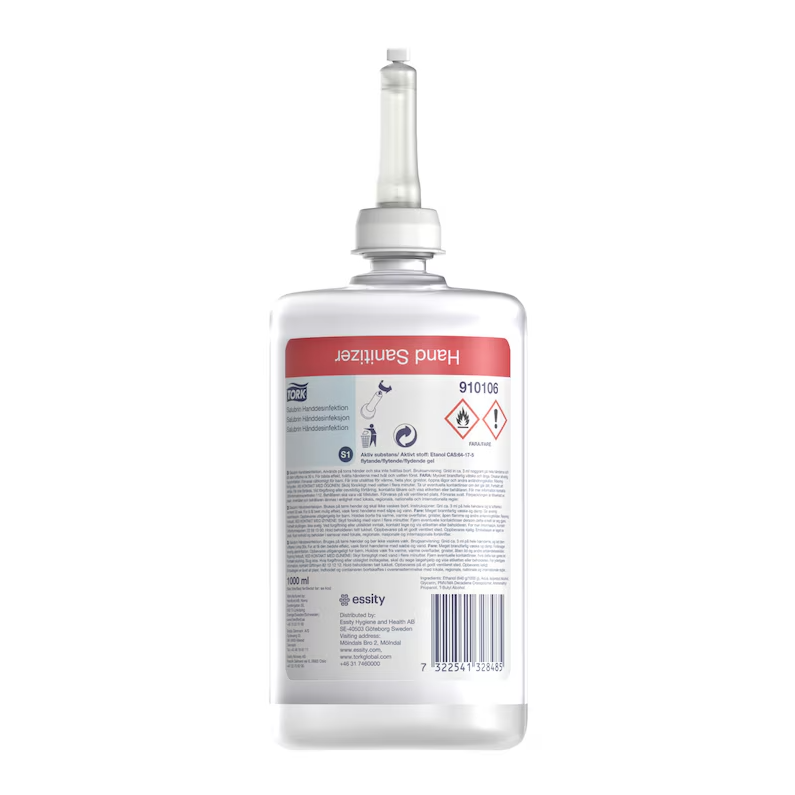 Den fabriksförseglade refillen med ny pump vid varje påfyllning minskar risken för kontaminering och säkerställer hög hygienstandard hela vägen till användaren. Passar Tork dispensrar inom S1-systemet.