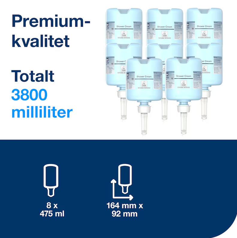 Tork Premium Mini S2 duschcreme är en vårdande och återfuktande tvål med fräsch doft som passar både kvinnor och män. Perfekt för hotell, skolor, sportanläggningar och andra offentliga miljöer. Produkten är kompatibel med Tork dispensrar för flytande tvål mini som är Easy to use-certifierade, vilket säkerställer god handhygien för alla användare.