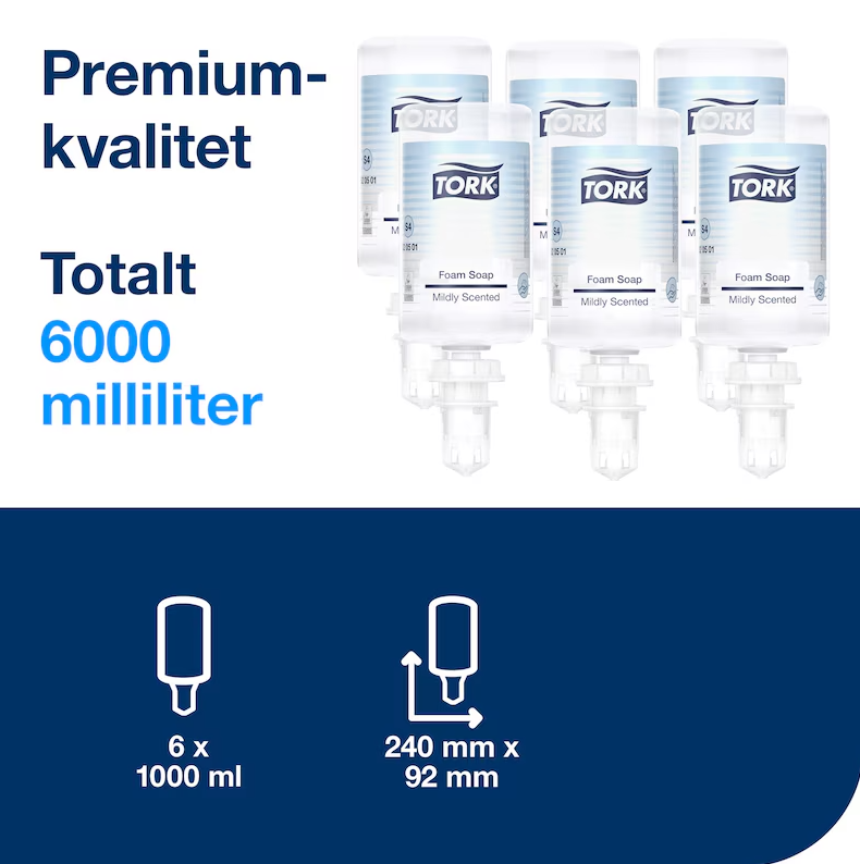 Tork Premium Skumtvål S4 är en vårdande handtvål med mild och fräsch doft, perfekt för daglig användning på normal och torr hud. Tvålen ger ett mjukt och krämigt skum som rengör skonsamt samtidigt som den återfuktar händerna. Produkten är kompatibel med Tork dispensrar för tvål och handdesinfektion som är Easy to use-certifierade, vilket säkerställer god handhygien för alla användare.