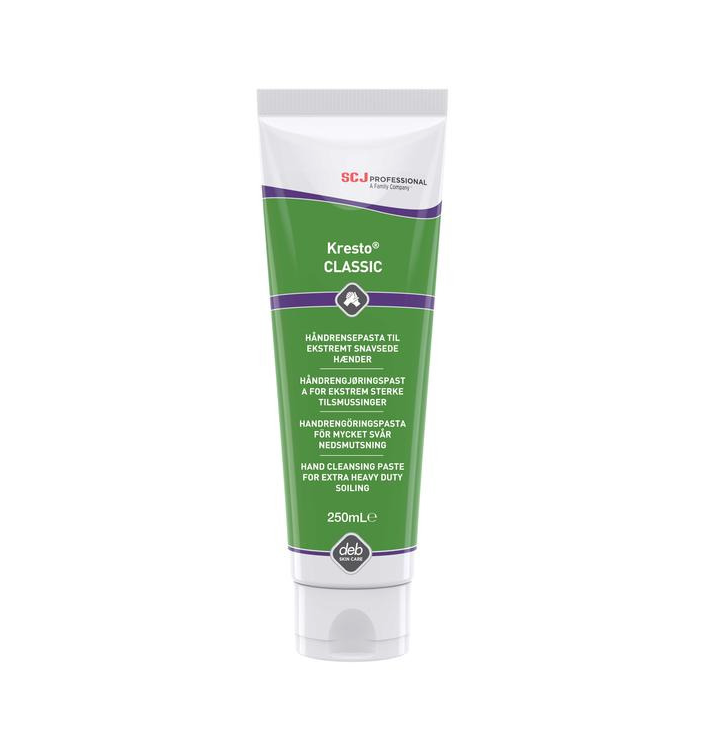 Handrengöring Deb Stoko Kresto Classic är en pasta som effektivt avlägsnar olja, fett, rök, aska och smörjmedel. Produkten är speciellt framtagen för industriella miljöer med extremt grov smuts.