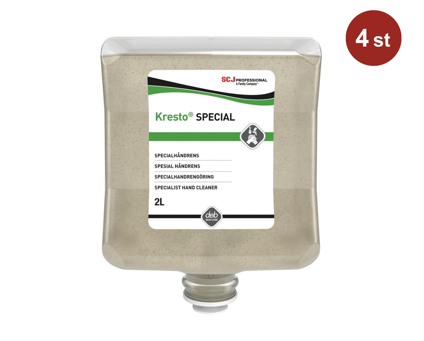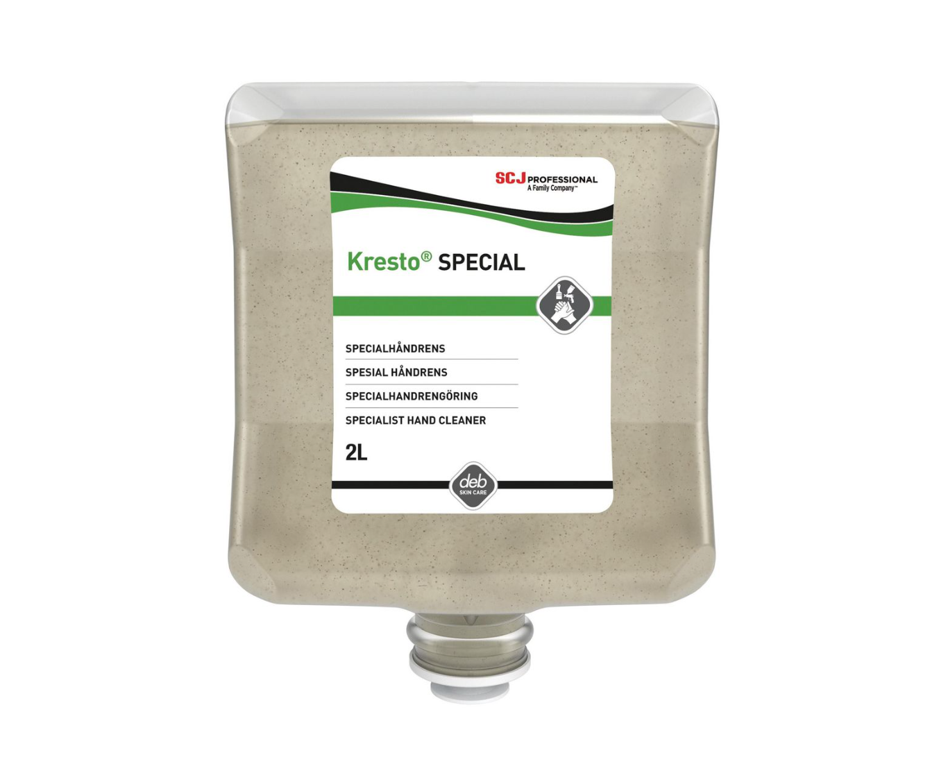 Deb Kresto Special Ultra är en högpresterande handrengöring för professionellt bruk, utvecklad för att avlägsna svårlösliga och klibbiga föroreningar i krävande industrimiljöer. Produkten innehåller både lösningsmedel och skrubbmedel och är särskilt effektiv mot ämnen som färger, lacker, hartser, lim och adhesiver.