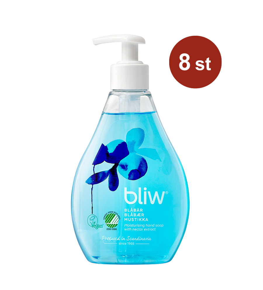 Varumärke Bliw EAN 7310618427032 Typ Handtvål Antal st/krt 8 Volym 0.3 L Utförande Pumptvål Parfymerad Ja Pump Ja -