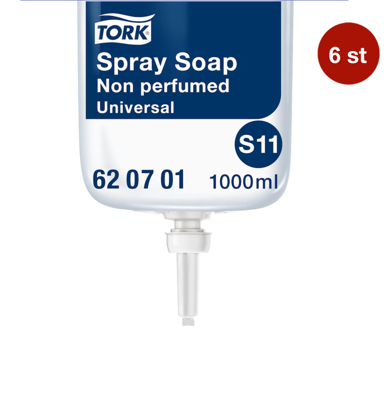 Förbättra effektiviteten i toalettutrymmen med hög besöksfrekvens med Tork Spraytvål. Den ger 3 000 doseringar med handtvål och innehåller en parfym- och färgfri formula som är skonsam mot huden.