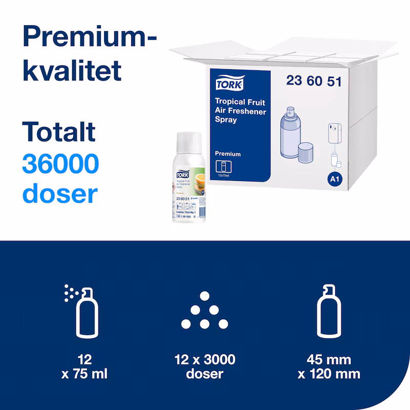 Varumärke Tork EAN 7322540030105 Typ Doftspray Material Metall Färg Färglös Bredd 4.5 cm Höjd 12 cm Längd 4.5 cm Vikt 0.067 kg Volym 70 ml Bruttovikt 0.1 kg Quality Premium System A1 - Tork Utseende Aerosol Parfymerad Ja - Produktblad