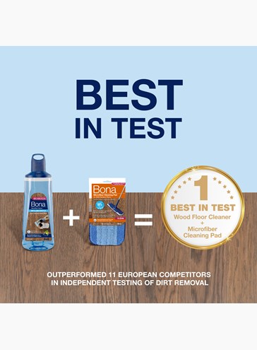 Bona Rengöringsmedel för Trägolv är pH-neutralt och avlägsnar effektivt damm, smuts och fett utan att skada golvet. Produkten torkar snabbt och lämnar en ren yta utan rester, ränder eller klibbighet. Den har utsetts till BÄST I TEST i jämförelse med 11 andra rengöringsmedel i oberoende labbtest. GREENGUARD-certifiering garanterar säkerhet för familj, golv och miljö. Bruksfärdigt – ska ej spädas.