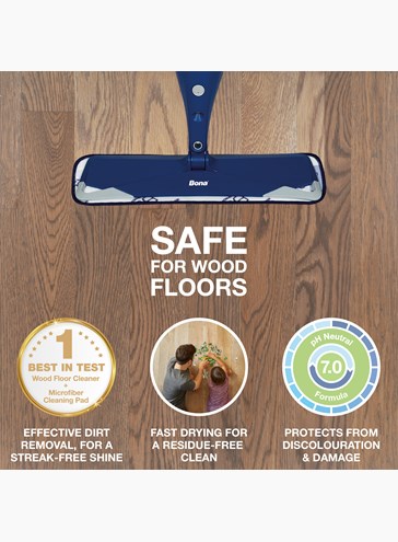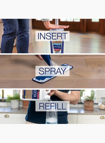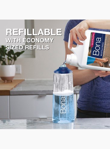 Rengöringsmedel speciellt utvecklat för skonsam och effektiv rengöring av lackerade och hårdvaxoljade trägolv. Flaskan monteras på Bona Premium Spray Mop och är färdig att använda. Användning av mikrofibermopp och sprayflaska minskar onödig kontakt med vatten, vilket skyddar golvet.