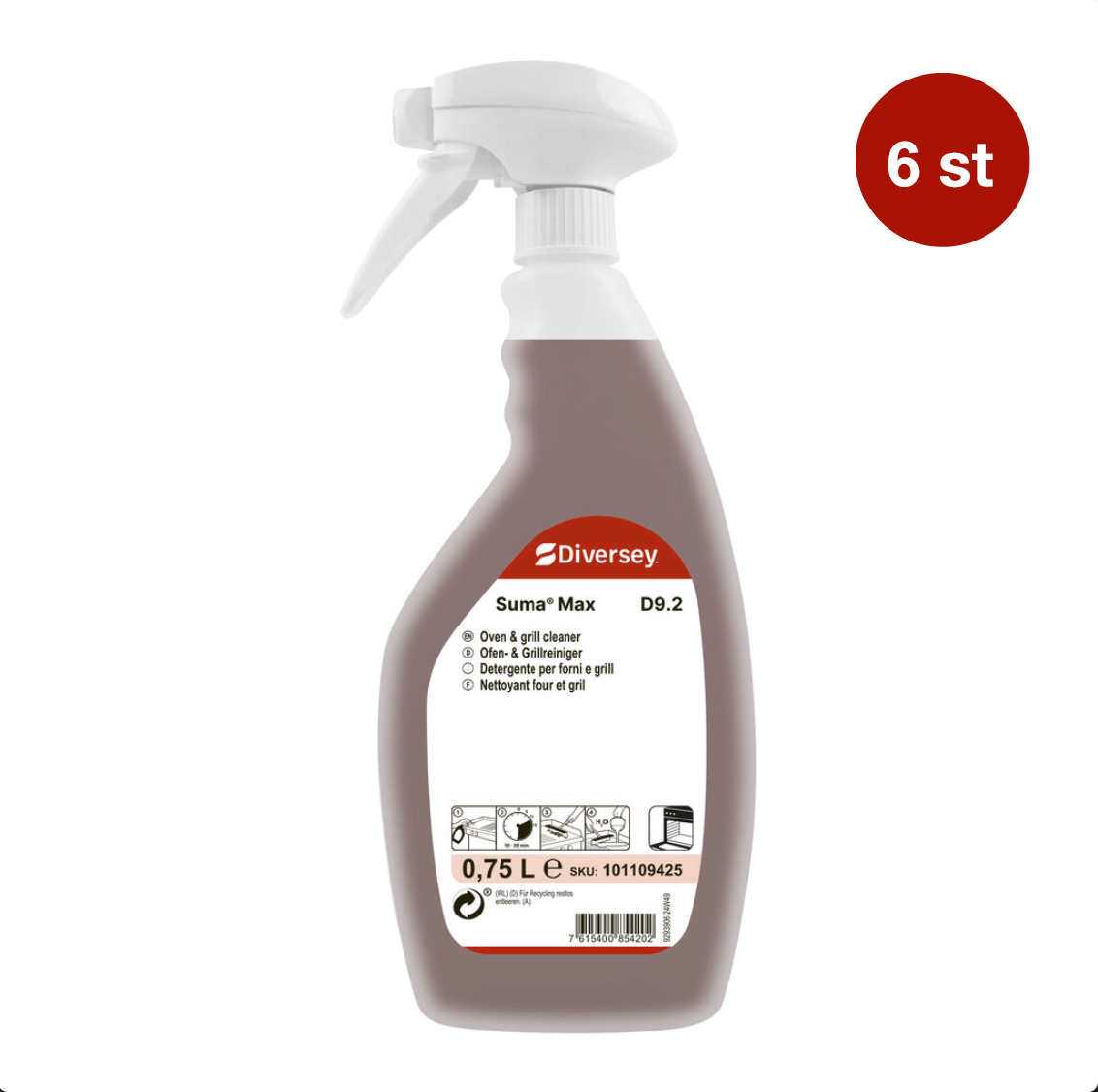 Varumärke Diversey Serie Suma EAN 7615400854202 Typ Ugnsrengöring Serie Suma Kategori Rengöringsmedel Färg Brun Bredd 19 cm Höjd 30 cm Längd 23.6 cm Vikt 0.75 kg Antal st/krt 6 Volym 0.75 L Hållbarhet 720 dagar Parfymerad Nej Ph-värdet 11.3 koncentrat Min temperatur 0°C Max temperatur 40°C - Produktblad
