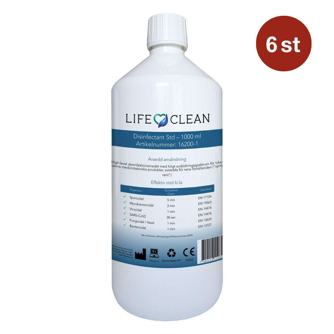LifeClean är ett desinfektionsmedel för ytor och redskap med dokumenterad 100% desinficeringseffekt och utvärderad som high-level desinfektion. Produkten eliminerar multiresistenta bakterier, sporer, virus, jäst, mögel, biofilm och parasiter samt minskar obehagliga lukter såsom fisk och urin. LifeClean är ett patenterat och stabilt desinfektionsmedel baserat på ClO2 och uppfyller europeiska EN-standarder. Produkten har testats av oberoende laboratorier och tredjepartsinstitut.