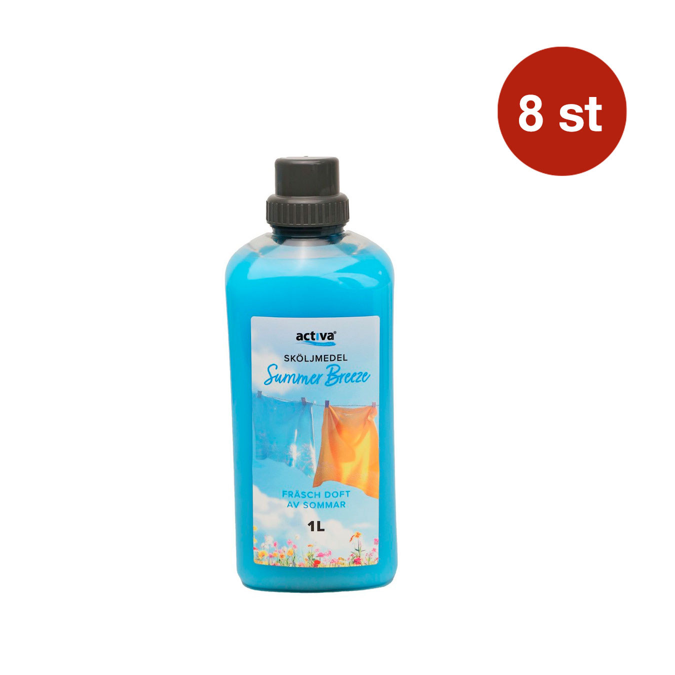 Ge tvätten en härligt fräsch känsla av sommar! Activa Summer Breeze 1L är ett effektivt sköljmedel som inte bara sprider en underbar sommardoft, utan också gör dina textilier mjuka och mycket lättare att stryka. Perfekt för allt från vardagskläder till sängkläder, tvätten blir både fräsch, mjuk och väldoftande. Skall ej användas på mikrofibermaterial.Visa mer beskrivningVisa mindre beskrivning -
