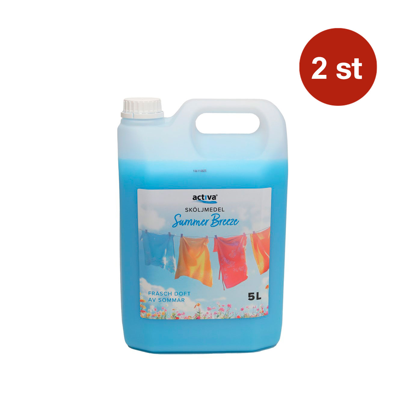 Ge tvätten en härligt fräsch känsla av sommar! Activa Summer Breeze 5L är ett effektivt sköljmedel som inte bara sprider en underbar sommardoft, utan också gör dina textilier mjuka och mycket lättare att stryka. Perfekt för allt från vardagskläder till sängkläder, tvätten blir både fräsch, mjuk och väldoftande. Skall ej användas på mikrofibermaterial.Visa mer beskrivningVisa mindre beskrivning -
