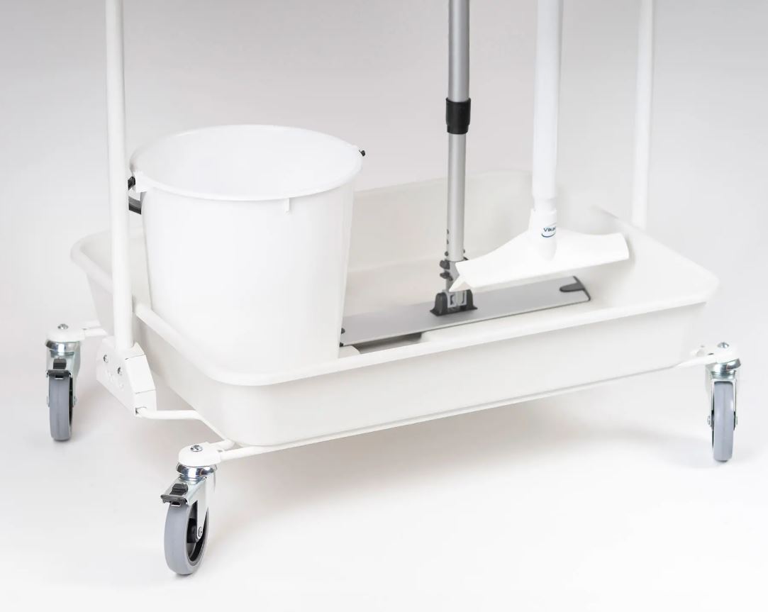 • Robust bricka för hinkar, moppboxar och andra tillbehör.