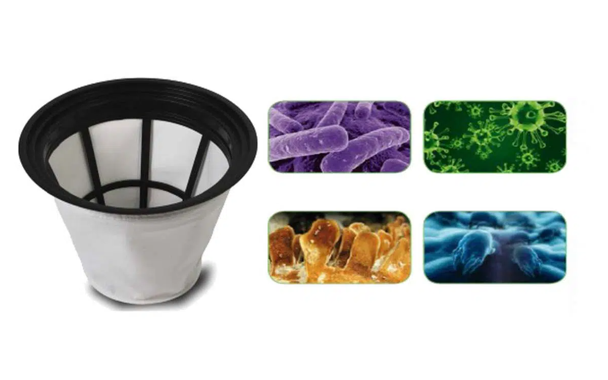 ● Specialfilter med silverjonbehandling som motverkar bakterier, virus, svamp och mikroparasiter