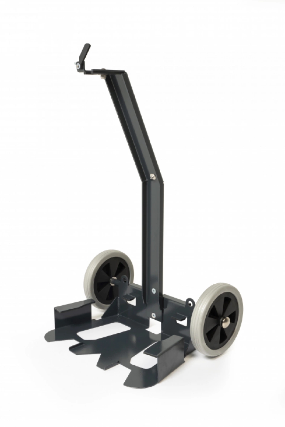 Supersmidig vagn för transport av Nu-Mop städmaskin. Nu kan du enkelt transportera städmaskinen mellan dina städobjekt. Rulla in maskinen i vagnen och lås fast. Transportera som en pirra, stora hjul som enkelt går över trottoarkanter eller upp för en trappa.