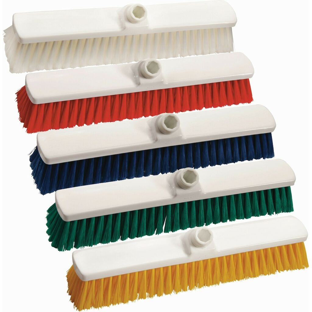Kvast med mjuka borststrån är det perfekta valet för att avlägsna fin smuts och damm och rekommenderas för torr användning. Färgkodade för zonindelning och uppfyller HACCP-kraven.