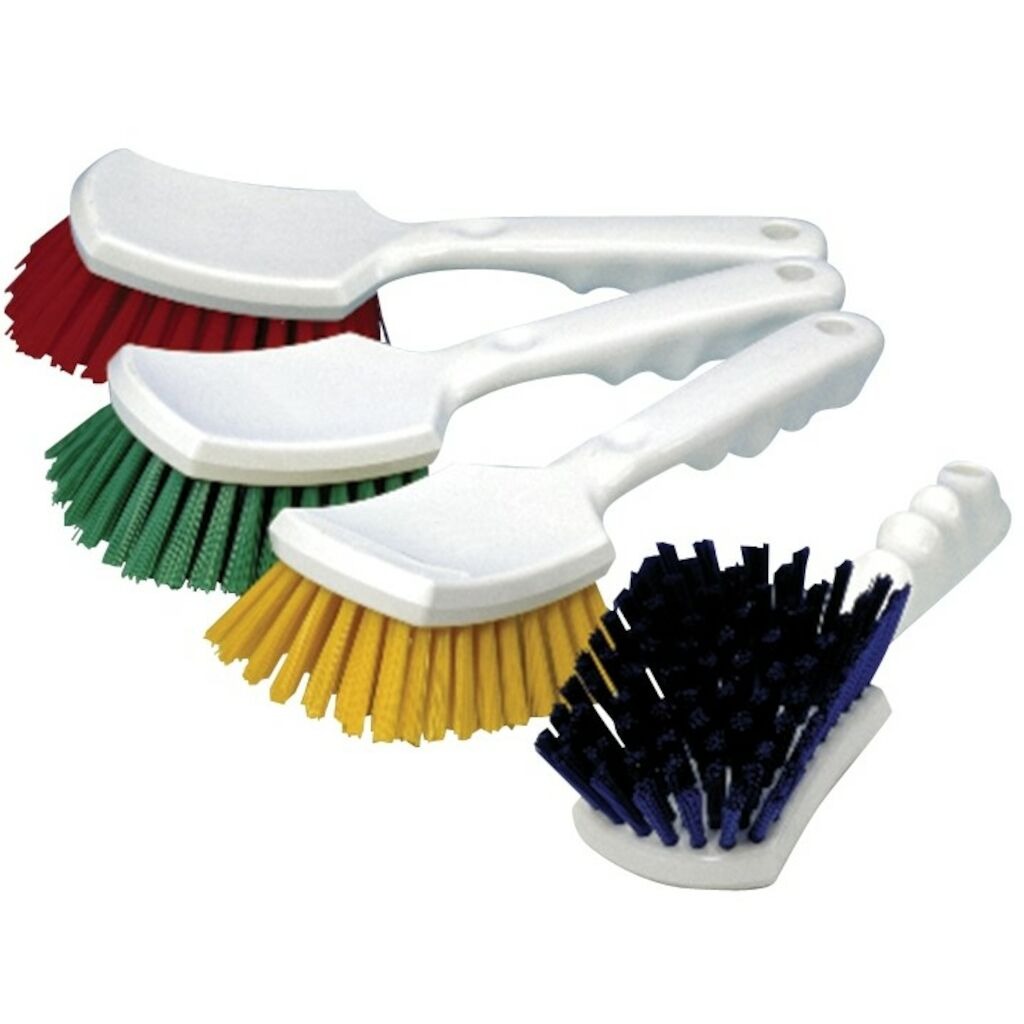 Diverseys handtagsborstar är mångsidiga och kan användas i många olika applikationsscenarier. Borstarna är färgkodade och uppfyller HACCP-kraven. Borstarna är tillverkade av robust polypropylen och är värmebeständiga upp till 140°C. Det korta hantaget rekommenderas för rengöring och skrubbning av områden som är lätta att nå.