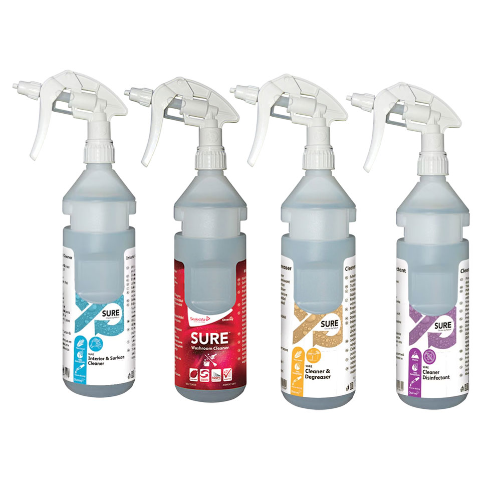 Varumärke Diversey Serie Sure Typ Sprayflaskor Serie Sure Kategori Städredskap Antal st/krt 6 Volym 0.75 L Användning Till Divermite Washroom, Till Divermite Interior & Surface Cleaner, Till Divermite Cleaner & Degreaser, Till Divermite Cleaner Disinfectant -