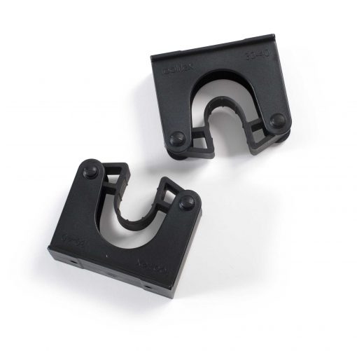 2-pack redskapshållare för upphängning av redskap med Ø30-40 mm. Monteras på vägg med medföljande skruv och plugg eller på Toolflex Original skena (köpes separat).