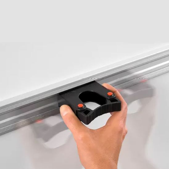 Vid behov kan du enkelt flytta hållarna i sidled och därmed skapa plats för nya hållare och redskap utan att behöva göra nya hål i väggen. Du kan även förlänga skenan med Toolflex Original Skena 50 eller 90 cm.