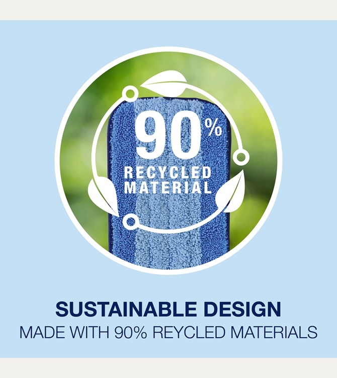 Bona Microfiber-rengöringspad använder samma patenterade design med dubbla zoner. De mörkblå yttre fibrerna bryter upp smuts, medan de ljusblå fibrerna absorberar och håller kvar smutsen med högre kapacitet än tidigare versioner. Den lämnar golven rena, fräscha och utan ränder.