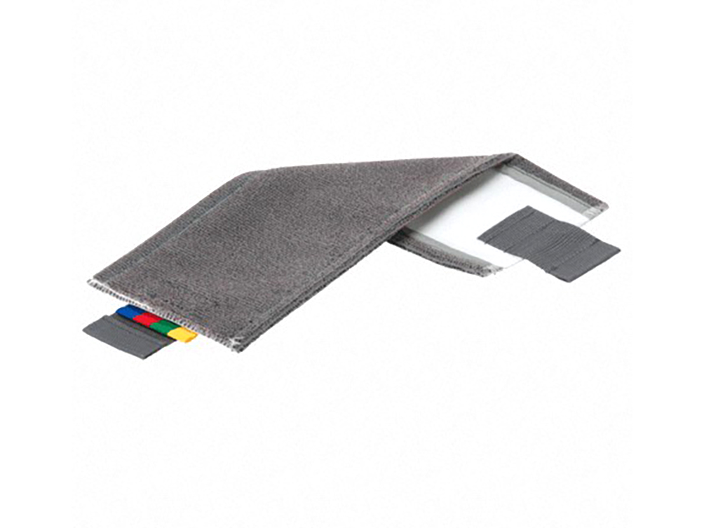 -Moppen kan färgkodas tack vare de fastsydda remsorna i fyra färger.