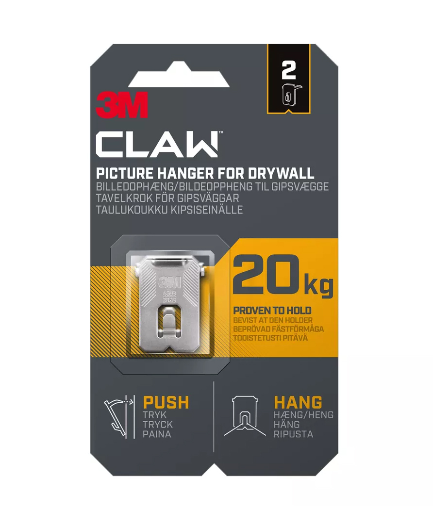 3M CLAW™ Tavelkrok för gipsvägg 20 kg 3PH20-2UKN, 2 krokar