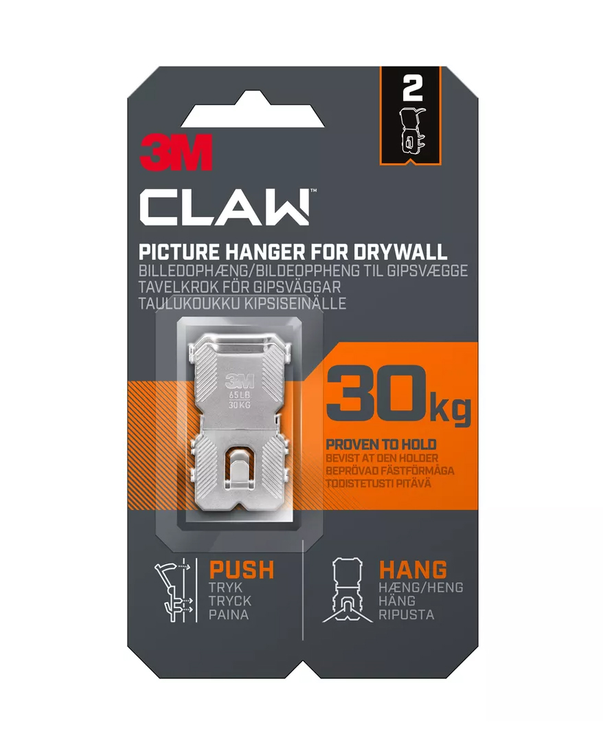 3M CLAW™ Tavelkrok för gipsvägg 30 kg 3PH30-2UKN, 2 krokar