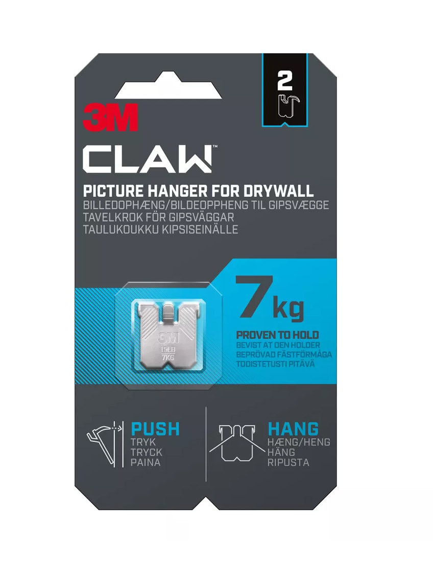 3M CLAW™ Tavelkrok för gipsvägg 7 kg 3PH7-2UKN, 2 krokar.