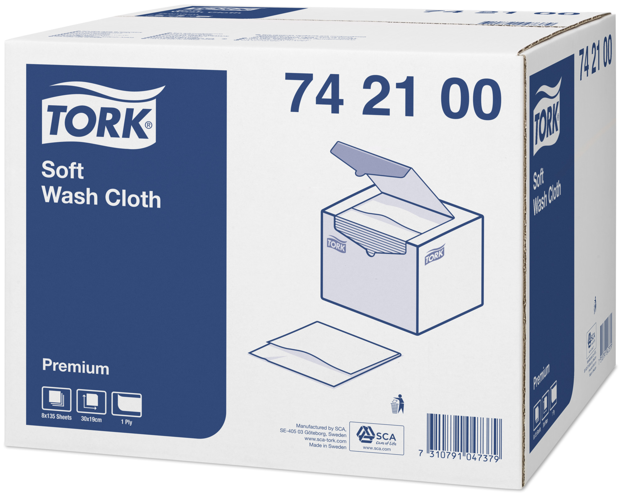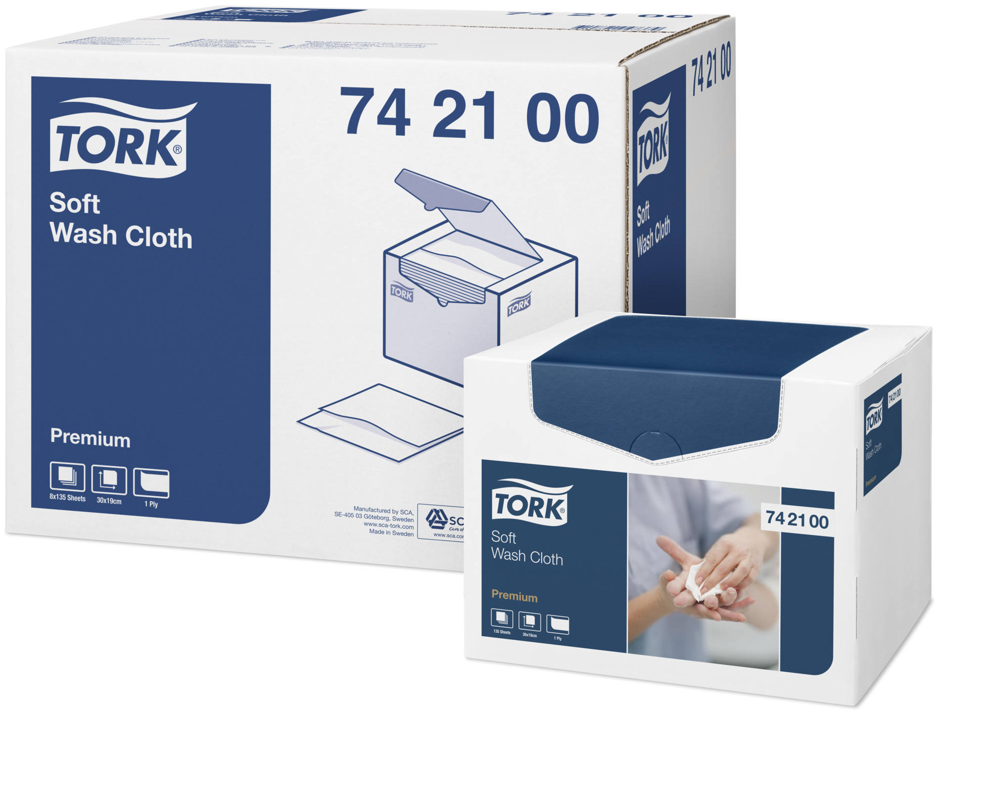 Skonsam vård av patienter med denna Tork tvättduk, som levereras i en praktisk förpackning att ha på lager. Använd Tork Premium tvättduk i patientrum och undersökningsrum för en mild och noggrann rengöring. Den mjuka men ändå starka duken hanterar enkelt mild tvål och vatten så att huden hålls frisk och bidrar till att minska infektionsrisken. Levereras i ett stort paket med 135 dukar, vilket gör den idealisk för sjukhus, läkarmottagningar och vårdhem. Består av cellulosabaserat, airlaid nonwoven-material förstärkt med mjukt viskosfiber.