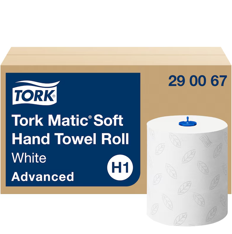Den mjuka Advanced Tork Matic®-handduken på rulle passar utmärkt i högklassiga toalettutrymmen. De är mjuka och mönsterpräglade med ett snyggt grått löv. Handdukarna torkar händerna snabbt och noggrant med hjälp av funktionen QuickDry™. Rullarna passar i Tork Matic® Dispenser-handduk på rulle som har utvecklats för enkelt underhåll i välbesökta toalettutrymmen. Dispensern sparar tid och reglerar åtgången genom att mata ut ett ark i taget.
