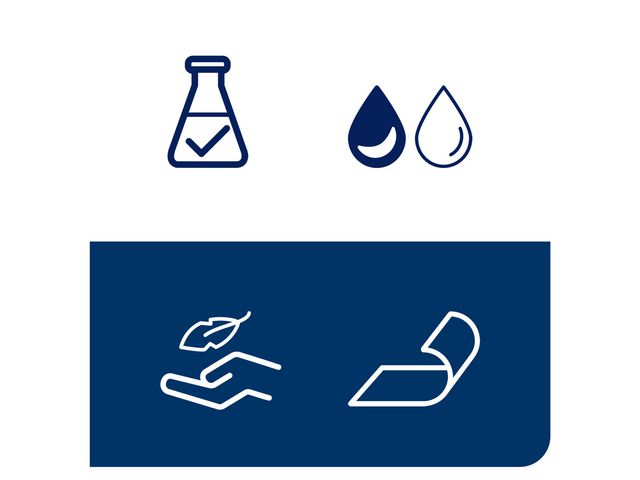 ● Användning och avfall – Återanvändbara rengöringsdukar som minskar förbrukning. Minskar lösningsmedel med upp till 40 %.* 20 % mindre förpackningsavfall.** Utmatning en handduk i taget minskar avfall. Tar upp till 80 % mindre plats än trasor.***