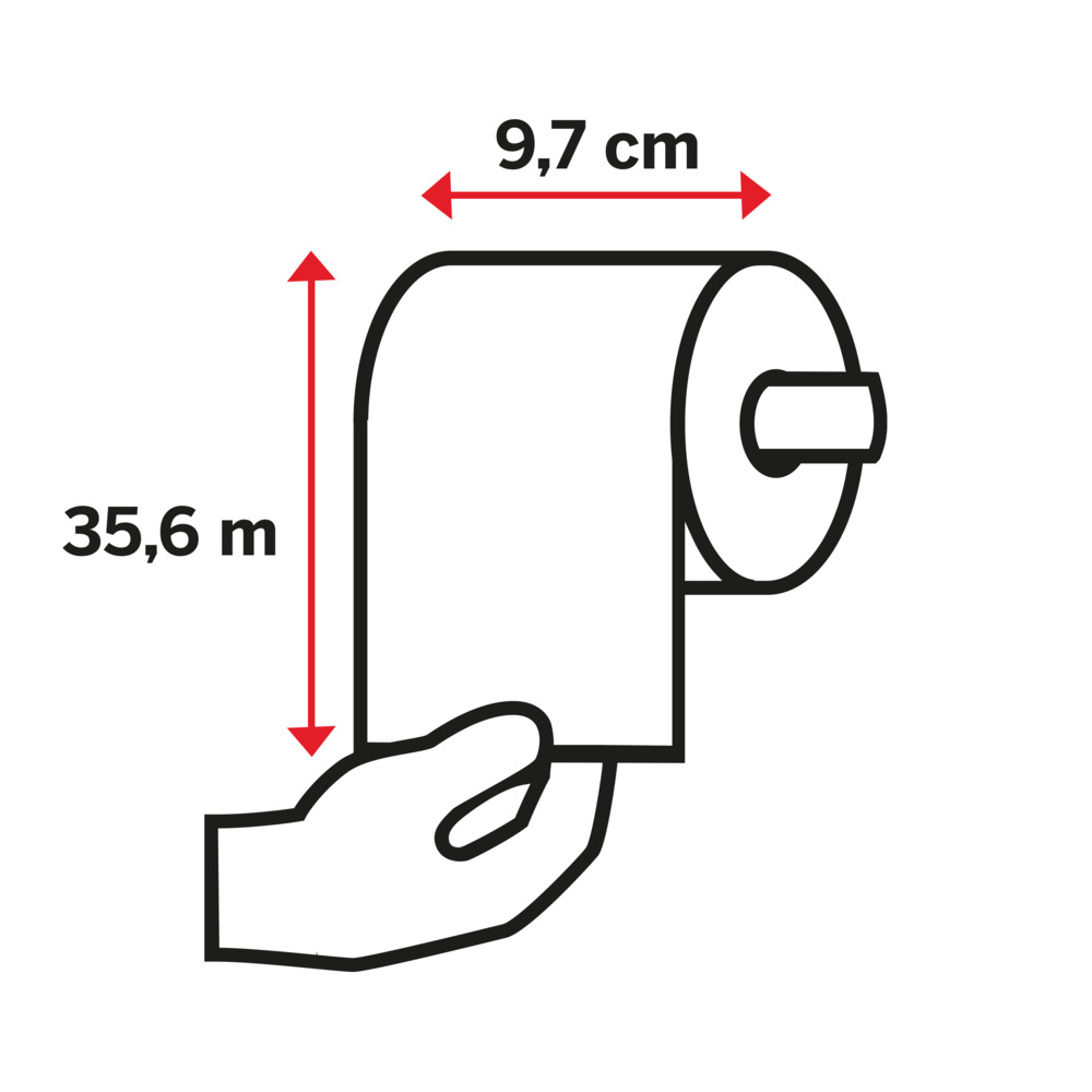 Toalettrulle av högsta kvalitet som erbjuder det lilla extra när det kommer till skonsam torkning, absorptionsförmåga och styrka. Med 3 lager ger toalettpappret en mycket mjuk och stark känsla, vilket ger dina gäster en lyxig upplevelse. Det passar perfekt i toalettutrymmen med låg förbrukning.