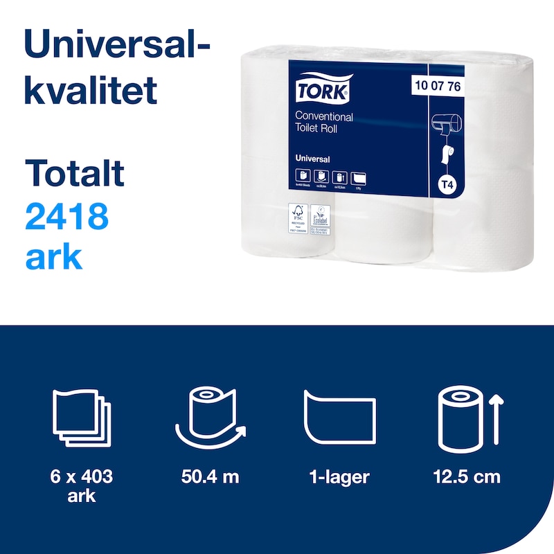 Tork T4 Universal 1 lager ToalettpapperBeskrivning: