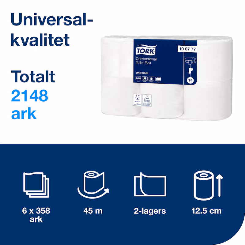 Tork Toalettpapper Universal – 2-lagersBeskrivning:
